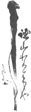 MORE ON JAPANESE CALLIGRAPHY Somyo, Sōmyo, Soumyou 草名 http://www.aisf.or.jp/~jaanus/deta/s/soumyou.htm Also read Sona, Souna. A signature in cursive script. During the Nara period, signatures were written in formal square Kaisho 楷書 script. The style changed to semicursive or Gyousho 行書 script during the Heian period, and later to cursive script, sousho 草書, where two characters were combined into one to form a symbol. During the Fujiwara period, this form of signature appeared in the opening paragraphs of letters. Considered to be similar to and perhaps an early form of a Kaou 花押. Genpitsu 減筆 http://www.aisf.or.jp/~jaanus/deta/g/genpitsu.htm Ch: jianbi. Often Genpitsubyou 減筆描. Also Ryakuhitsu 略筆. Lit. abbreviated brush drawing. An ink painting technique that employs a minimum of brush strokes to capture the essential features of an object, human figure, or scene. Of the three categories of brushwork (shin gyou sou 真行草) it is closest to the cursive style (sou) well suited for symbolic, suggestive renderings. Genpitsu is thought to have originated in China during the late Tang dynasty (+618-907) and flourished during the Song dynasty (+960-1279). Liang Kai 梁楷 (Jp: Ryou Kai late +12-13c) is said to have perfected this technique, and many of his figure paintings are prime examples. One such painting is his "Li Po reciting" (Ri Haku ginkou-zu 李白吟行図), a hanging scroll in Tokyo National Museum. Chinese genpitsu paintings were greatly admired and imitated by Japanese painters, especially during the Muromachi period. The technique is one of the eighteen types of figure portrayal, jinbutsu juuhachibyou 人物十八描. Ashide 葦手 http://www.aisf.or.jp/~jaanus/deta/a/ashide.htm Lit. 'reed-hand script'. A decorative, pictorialized style of calligraphy, de 手, developed during the 9c in which cursive characters are disguised in the shape of reeds, ashi 葦, streams, rocks, flowers, birds, etc. A marsh scene with ashide characters was a motif frequently used in the under-drawings, shita-e 下絵, to decorate the paper of poetry anthologies and Buddhist scriptures or as the designs on textile and lacquer-ware. The term appears in literature from the 9th c onward. In the late 10c, The Tale of The Hollow Tree (UTSUBO MONOGATARI 宇津保物語), ashide is defined as one of several recognized forms of calligraphic script. Several extant examples of ashide date from the 12c. The decoration in underdrawing of 1160 in The Collection of Chinese and Japanese Poems for Singing (WAKAN ROUEISHUU 和漢朗詠集, Ministry of Cultural Affairs), with calligraphy written by Fujiwara no Koreyuki 藤原伊行, shows the fully developed stage of ashide. After the 13c, the term came to be applied loosely to mean: 1) a picture in which ashide characters were included; or 2) a type of pictorial puzzle or rebus using ashide letters and pictorial elements as clues to a poem (see uta-e 歌絵). These representations are also called reed-hand-script paintings, ashide-e 葦手絵, and they were no longer limited to marsh landscapes. For example, decorative cursive characters are found in a tree in the late 13c illustrated handscroll of The Lord Takafusa's Love Songs (Takafusakyou tsuyakotoba emaki 隆房卿艶詞絵巻, National Museum of Japanese History, Chiba prefecture). MOJI-E 文字絵 Pictorial Calligraphy. Ko (character for "child") Yi Dynasty Korea, +19th Century, Length 77 cm Photo Courtesy The Japan Folk Crafts Museum Moji-e 文字絵 = Pictorial Calligraphy Below text courtesy of JAANUS A picture with the Japanese syllabary cleverly used as part of the motif. Another type of moji-e was called ashide-e, where entwined grass, flowers or water motifs took the form of Japanese syllables. These were popular during the Heian period. In the Edo period, it became popular to cleverly arrange letters in the folds and outlines of the garments worn by samurai or beautiful women in the prints. This device can be seen in ukiyo-e by Torii Kiyomasu (fl.c. +1696-1716), paintings by Okumura Masanobu (+1686-1764) and picture calendars (e-goyomi) by Kiyomasu II, Nidai Kiyomasu (+1706-63). Single-sheet multi-color moji-e also survive by Isoda Koryuusai (fl.mid +1760s-80s), Katsukawa Shunshou (+1726-92) and Katsushika Hokusai (+1760-1849). | | | | Stylized form of Ki / Chi | | | Traditional form of Ki / Chi | | | Simplified form of Ki / Chi | | | KI (Chi, Ch'i, Qi) Calligraphy by Afaq Saleem from Holland (Martial Artist and Calligrapher) Afaq's Web Page & Estore | Ki (Chi, Ch'i, Qi) Vital Energy, Life Force, Breath, Spirit Roughly equivalent to the Sanskrit Prana, the peculiarly unforced energy associated with breath. | | | | | Holy Wind through the Bamboo Trees by Afaq from Holland (Martial Artist and Calligrapher) Afaq's Web Page & Estore | DREAM (Japanese = Yume) Calligraphy by Qiao Seng, a Zen artist. The hand-painted seal says "Dreaming of Butterflies." His artwork can be purchased by visiting his site. | | | | | | Sake - Japanese Nihonshu, or Rice Wine Drawn by Yasutaka Daimon's father | Aji - Taste (scanned from a match book) | Painting at Ryutakuji A Famous Zen Temple in Japan | | | | | Calligraphy by Steve Weiss. Says Steve: "This piece reads KAN 関, meaning 'barrier.' Done in sōsho style, it was inspired by a piece by Ōmori Sogen 大森 曹玄 (1904-1994), wherein he defined it as the "perceptive barrier" that all students of Zen must cross over. If you think about KAN defined as a barrier from a Buddhist perspective, nothing really exists, no barriers at all! What Ōmori Sogen was saying was that one has to develop the perception to penetrate this invisible barrier (created by man himself) in order to realize one's Buddha nature." | Calligraphy by Steve Weiss. Says Steve: "This piece reads MU NEN MU SŌ 無念無想 and is an old martial art saying meaning 'no thoughts no desires.' It is a highly developed state of mind where thinking about your opponent or technique